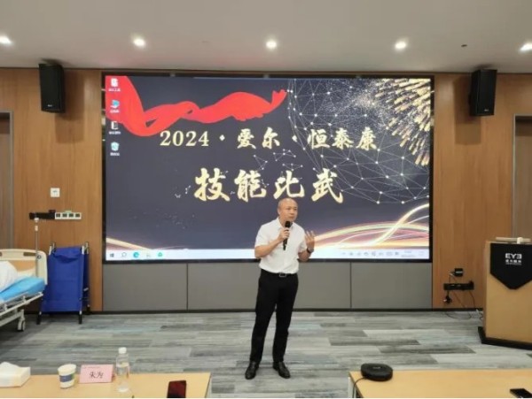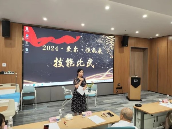 此次比武共有三個項目,分別為“敘事護理”、“跌倒應急處置”和“團隊心肺復蘇”,總歷時近2個月,前期是由恒泰康集團下屬17家醫(yī)院通過演練視頻進行初賽角逐,通過總部認真審核評比后,共角逐出12支隊伍參加本次線下進行的技能比武決賽。集團總裁室領導及各職能部門負責人均出席并擔任技能比武競賽評委,大賽還特邀湖南省腦科醫(yī)院護理部李梅芝主任蒞臨比武現(xiàn)場指導。