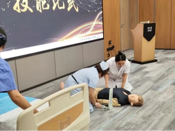 此次比武共有三個項目,分別為“敘事護理”、“跌倒應急處置”和“團隊心肺復蘇”,總歷時近2個月,前期是由恒泰康集團下屬17家醫(yī)院通過演練視頻進行初賽角逐,通過總部認真審核評比后,共角逐出12支隊伍參加本次線下進行的技能比武決賽。集團總裁室領導及各職能部門負責人均出席并擔任技能比武競賽評委,大賽還特邀湖南省腦科醫(yī)院護理部李梅芝主任蒞臨比武現(xiàn)場指導。